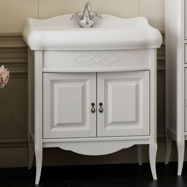 Тумба под раковину Opadiris Лоренцо Z0000008220 Белая матоваяВыполнена в классическом стиле с плавными изогнутыми формами и изящными слегка гнутыми ножками. Фасадные элементы украшены резными узорами.Материал фасада/корпуса: массив бука/влагозащищенный ЛДСП+массив бука.