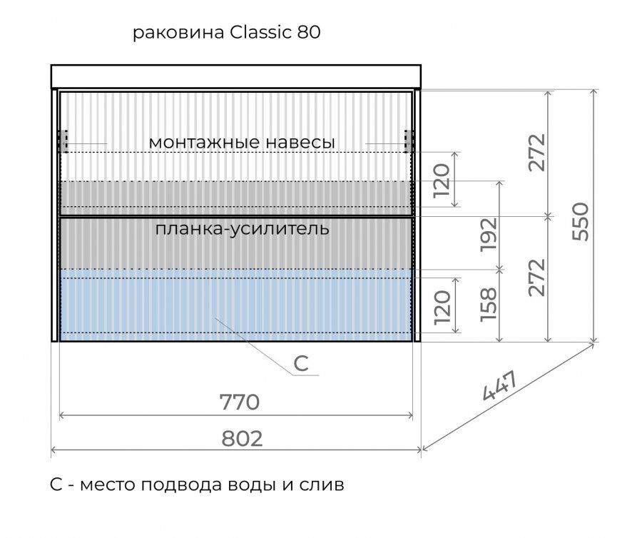 - Раковина Andrea Classic 80 (ш/г/в): 802x450x151 мм