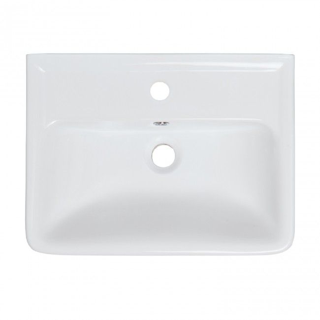 Керамический умывальник прямоугольной формы, в котором гармонично сочетаются плавные формы, четкость линий и элегантность.