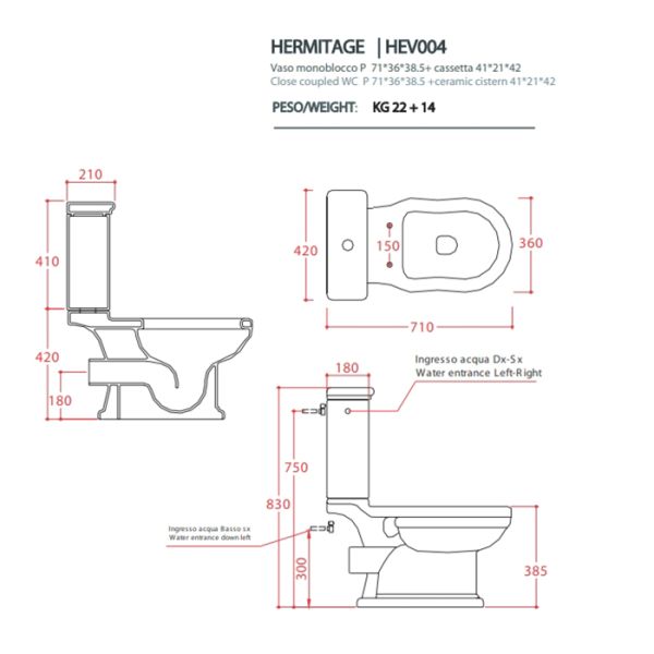 Унитаз Artceram HERMITAGE HEV004 01 00 белыйArtceram HERMITAGE унитаз моноблок 71*36см слив в стену с креплением, цвет белый