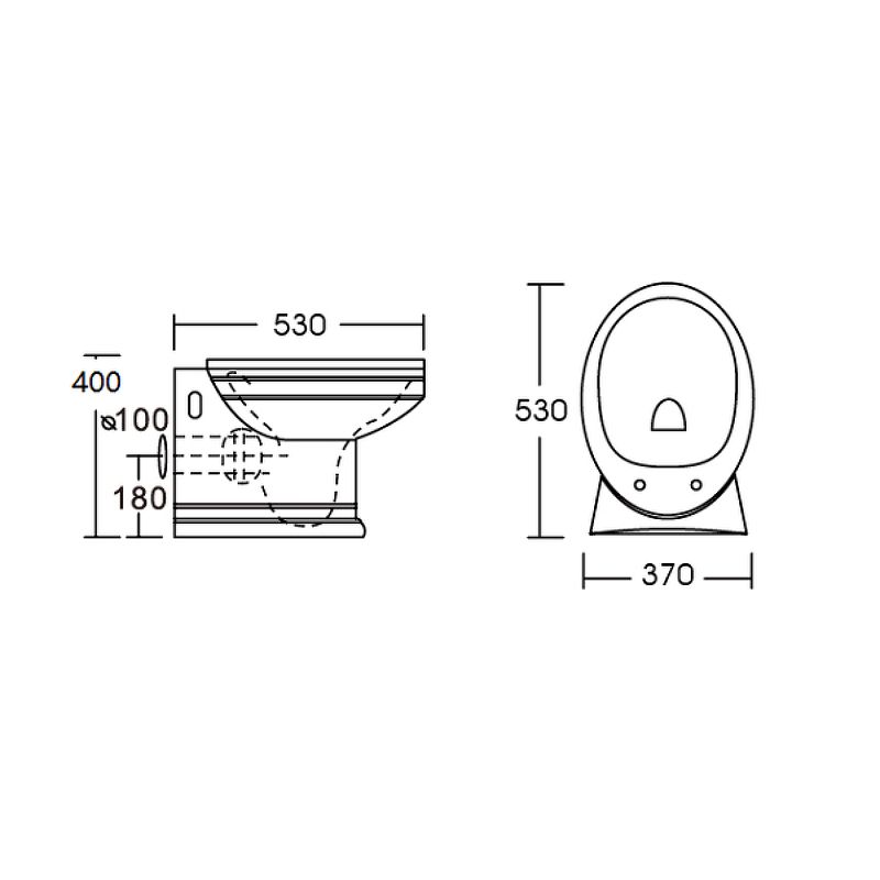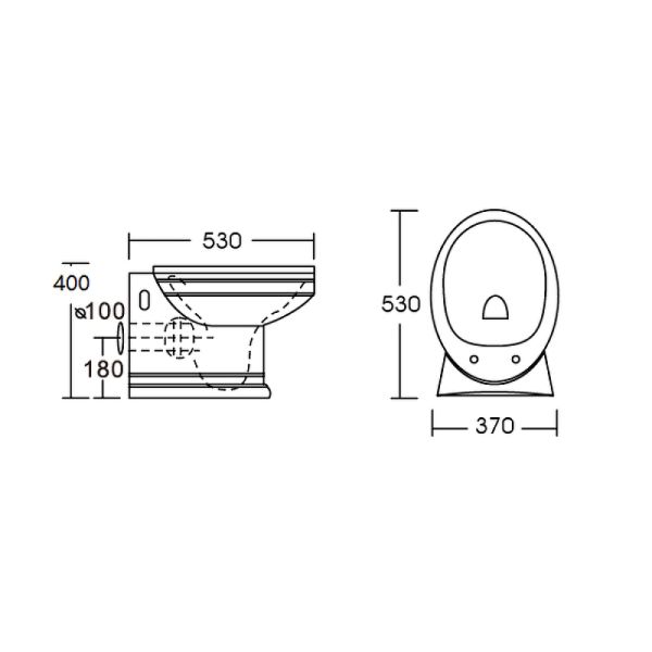 Габариты унитаза (ШхВхД): 37х37х53 см.