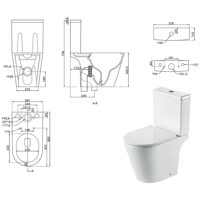 - Укороченный унитаз:нет