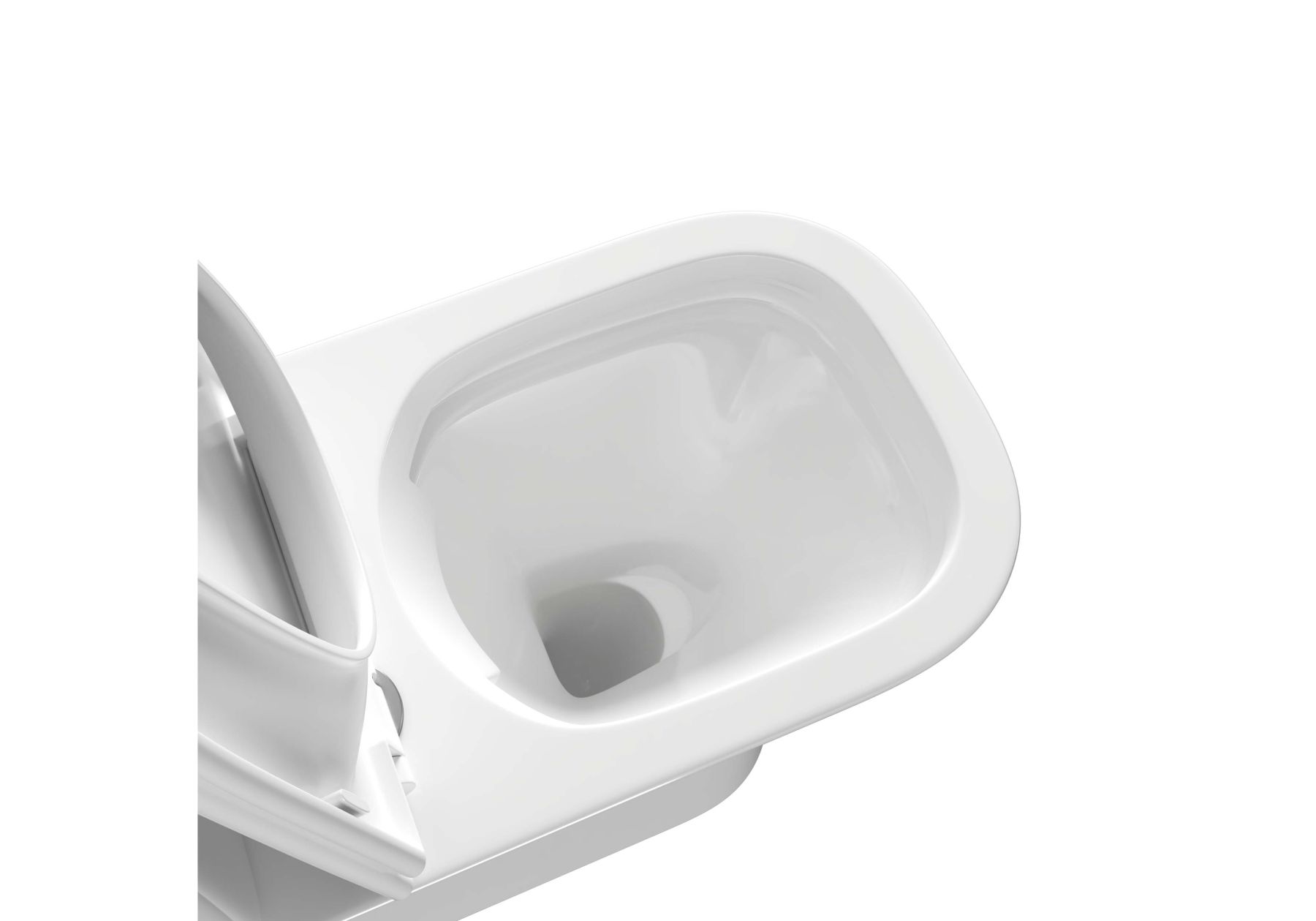 Мощный каскадный смыв полностью омывает поверхность и исключает выплескивание воды.