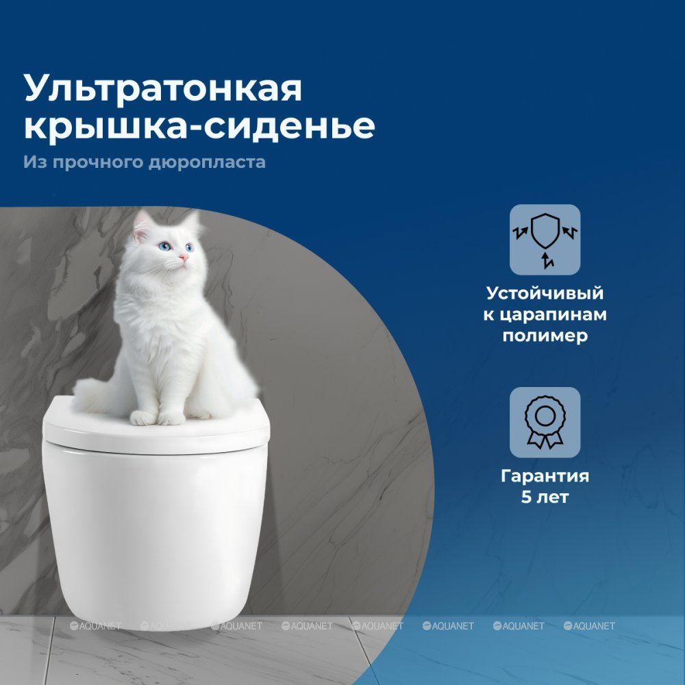 - Ультратонкая быстросъемная крышка- сиденье из дюропласта с функцией Soft Close.
