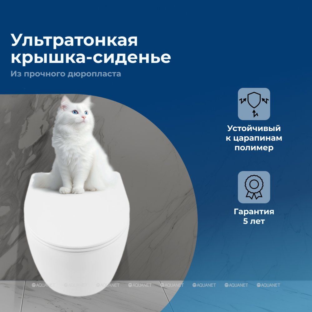 - Ультратонкая быстросъемная крышка- сиденье из дюропласта с функцией Soft Close.