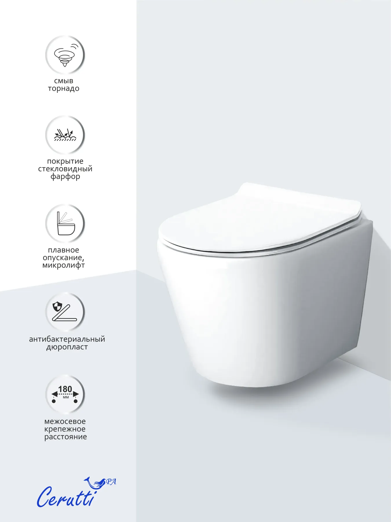 Унитаз подвесной Ceruttispa LUIGI Aria Tornado CT11101 безободковый со смывом торнадо купить