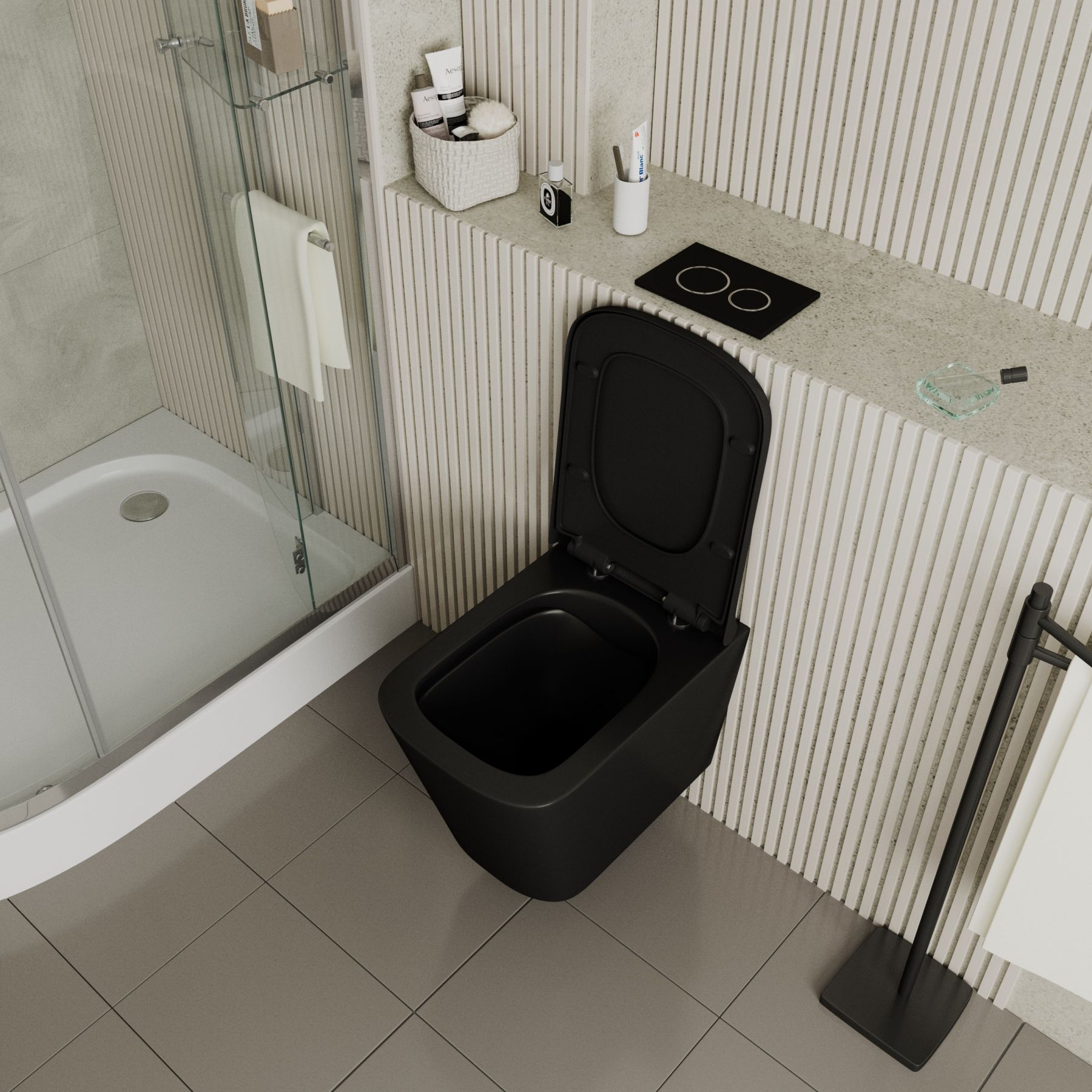 Строгие черты в цвете black подчеркнет индивидуальность санузла.