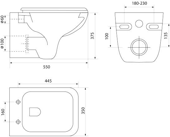 Унитаз подвесной безободковый с сиденьем из дюропласта с функциями Soft Close, Easy Fix. Размер: 550х350х375 мм (ДхШхВ). Высокий уровень гигиеничности, эстетичный вид и простая уборка благоДаря безободковой конструкции чаши. Полный омыв чаши. Без крепежа. Упаковка: картонная коробка.