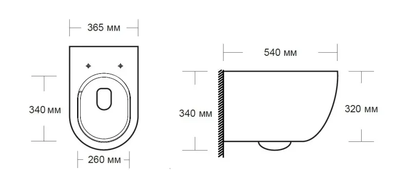 - Прилегание унитаза к стене:вплотную