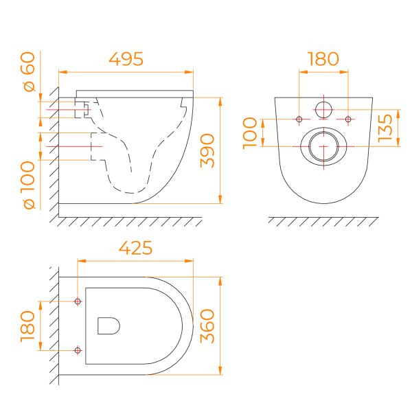 - Прилегание унитаза к стене:вплотную