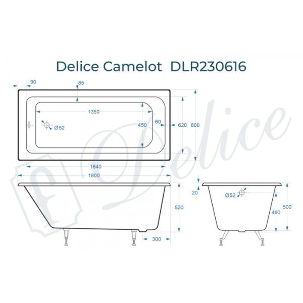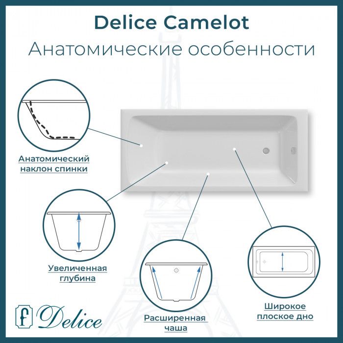 Ванна чугунная Delice Camelot DLR230616 180х80 купить