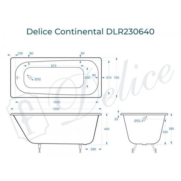 Ванна чугунная Delice Continental DLR230640 120х70 купить
