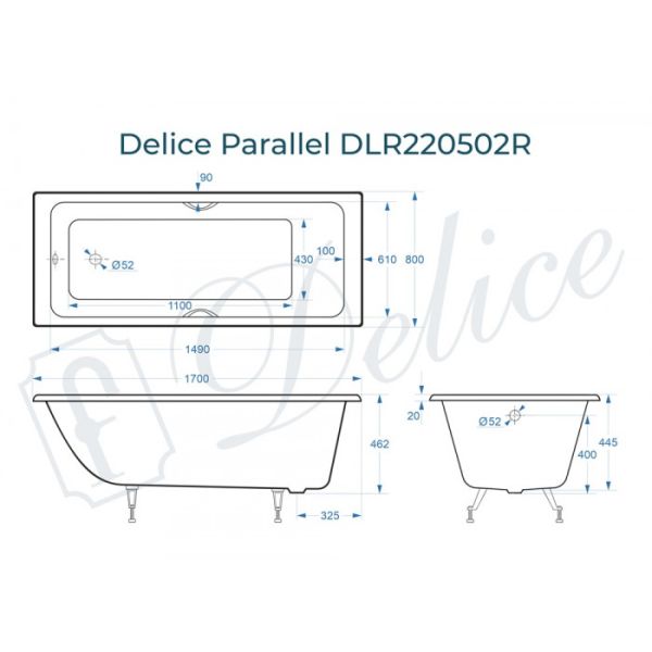 Ванна чугунная Delice Parallel DLR 220502R 170x80 с ручками купить