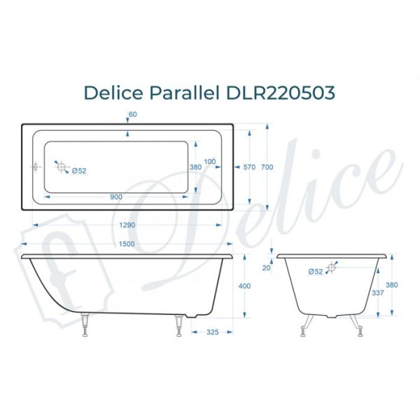 Ванна чугунная Delice Parallel DLR 220503 150x70см белый купить