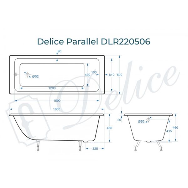 Ванна чугунная Delice Parallel DLR 220506 180x80см белый купить