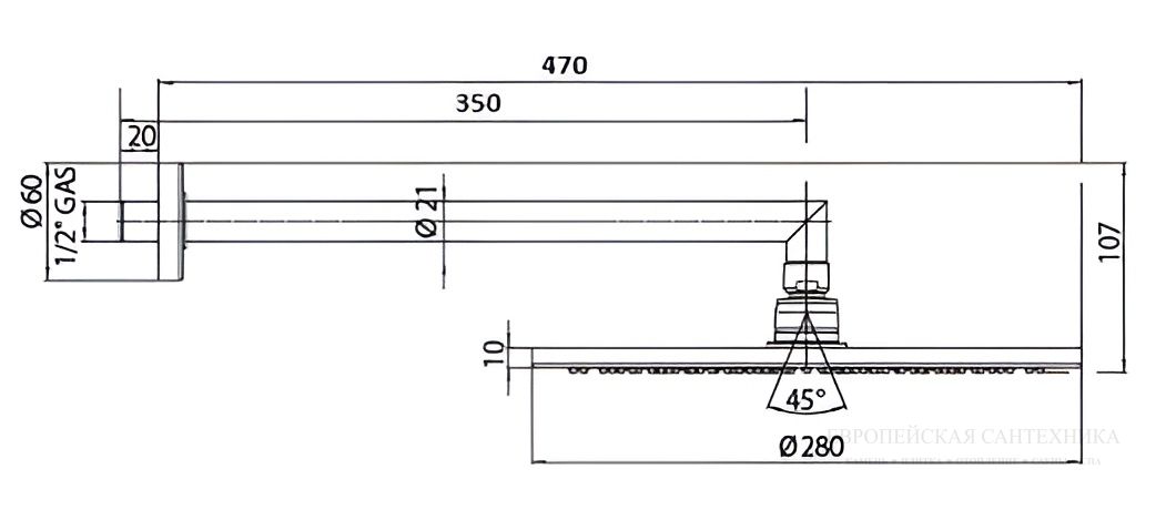 - Тип:верхний душ
