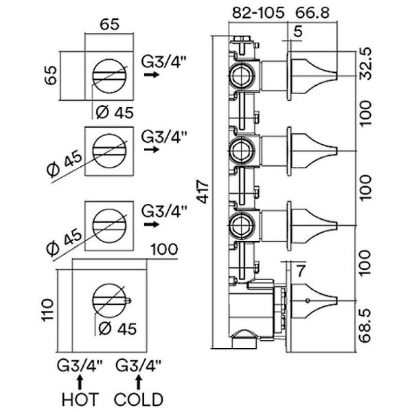 Термостат высокой пропускной способности Bossini Apice – это надежное и стильный выбор для вашего помещения. Его внешняя часть выполнена в элегантном хромированном цвете, который прекрасно гармонирует с любым интерьером.