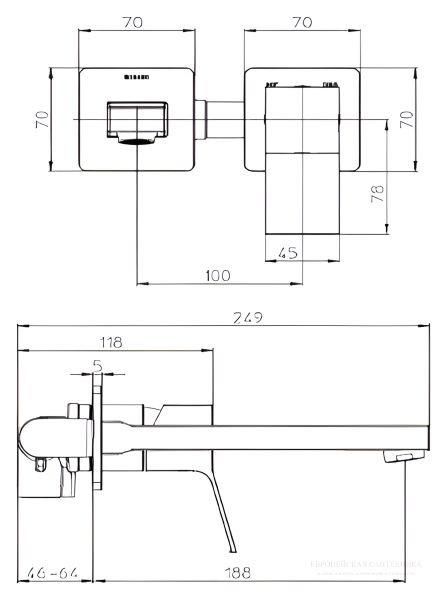 Этот продукт является встраиваемым и настенным, что позволяет экономить место на раковине и создает чистый и минималистичный облик. Внешняя часть выполнена в хромированном цвете, который придает ему блеск и современный вид.