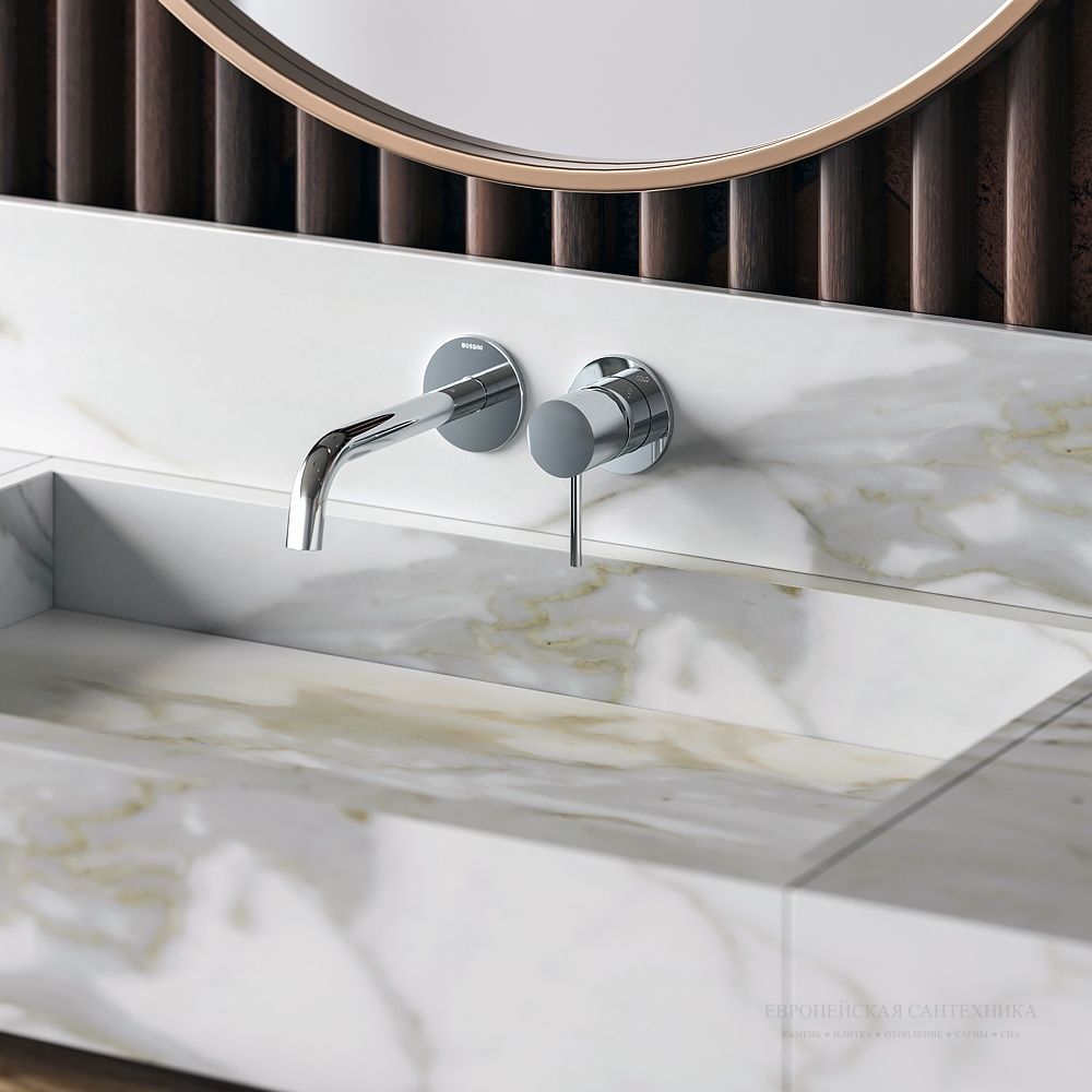 Смеситель для раковины Bossini Teo представляет собой отличное сочетание современного стиля и функциональности. Однорычажная встраиваемая настенная модель с изливом длиной 188 мм подчеркнет чистоту линий и минимализм в интерьере ванной комнаты, добавляя ей свежести и блеска.