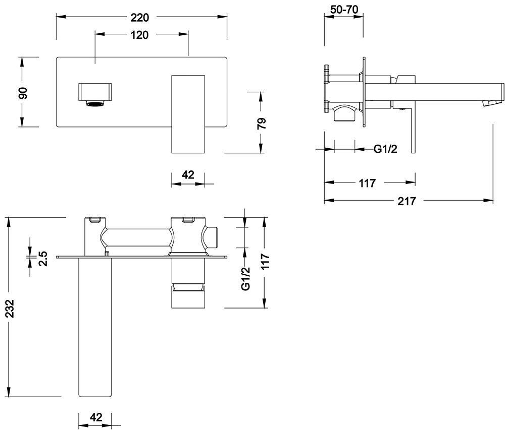 - Смеситель для раковины, скрытого монтажа