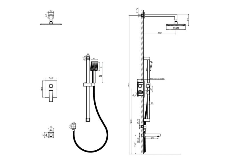 - Размер верхнего душа, см:20*30