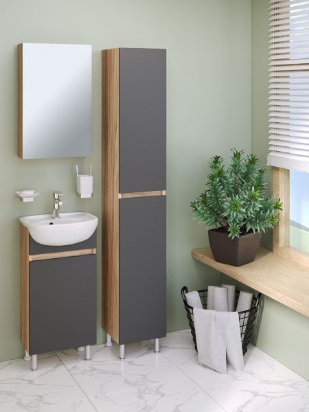Зеркальный шкаф для ванной RUNO ЛАДА - модное и оригинальное решение для бюджетного оснащения ванной комнаты. Зеркало шкаф для ванной ЛАДА - выполнено в двух цветах - классическом белом и в стильном цвете - серый дуб. Шкафчик в ванную имеет одну распашную дверцу с зеркальным фасадом. Шкаф зеркало для ванной оборудован петлями со встроенным доводчиком. Внутри шкафа - две внутренние полки. Мебель для ванной RUNO - красота и практичность в мелочах!