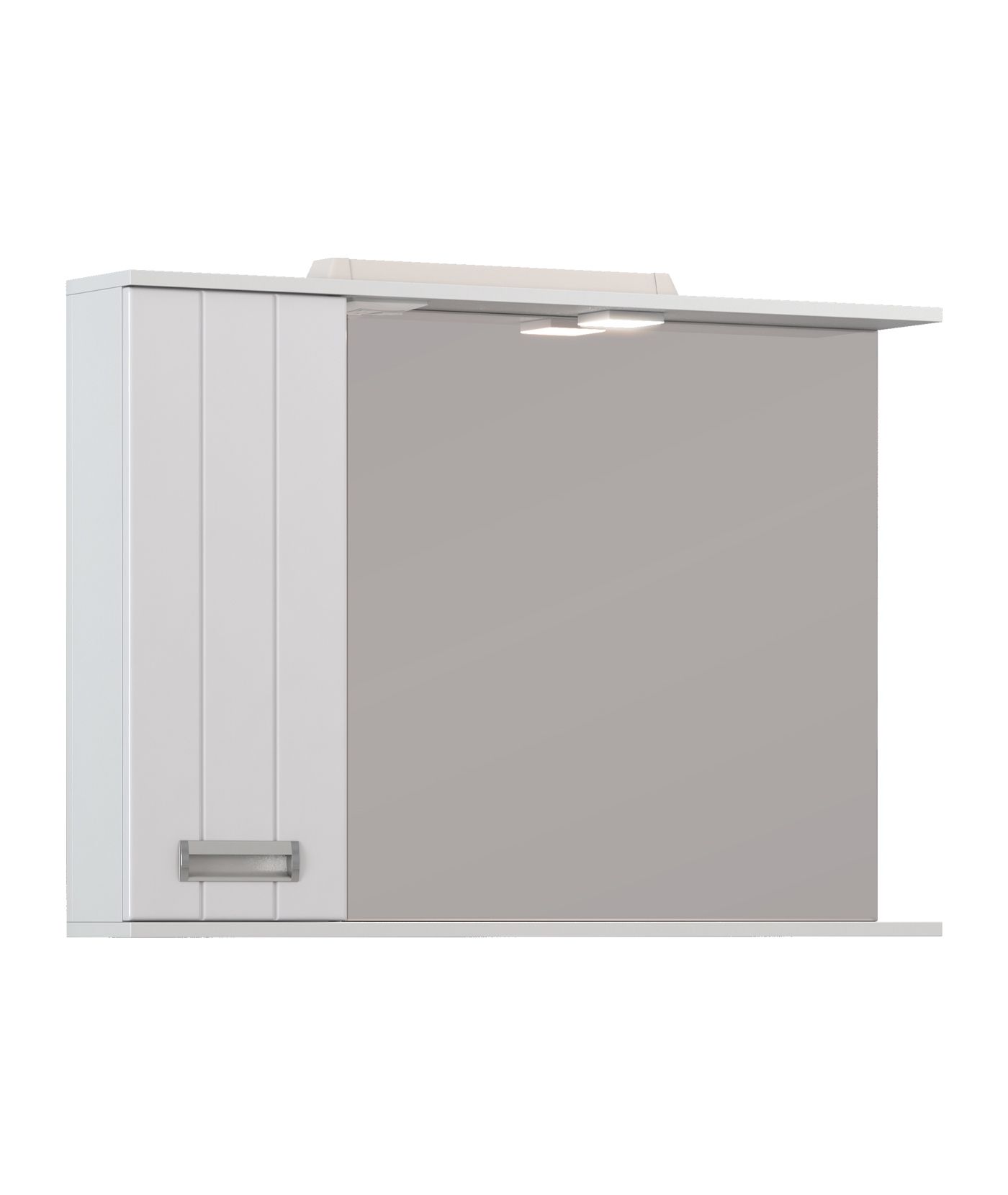 1 дверца; 2 полки ЛДСП; ручка металлическая хромированная; 1 светодиодный светильник; включатель с розеткой.