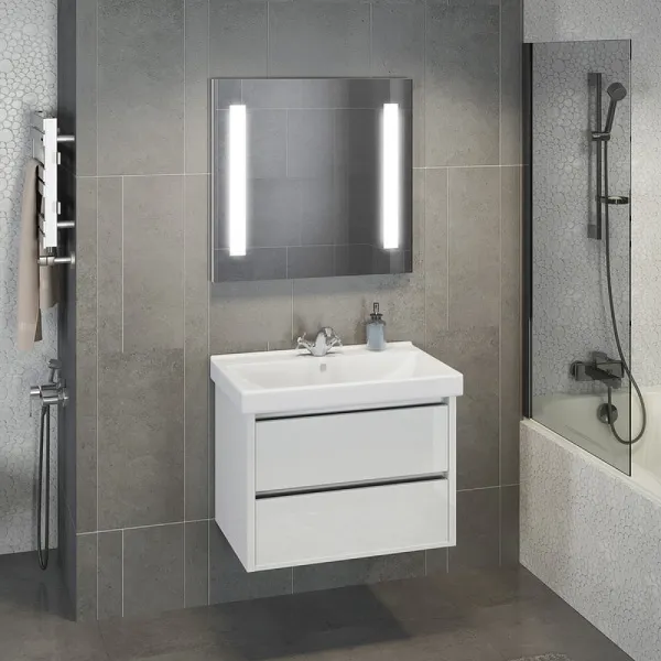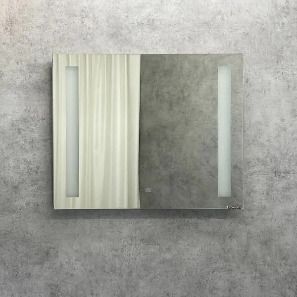 Зеркало Comforty Жасмин 75 00-00014139 75 смЗеркало с двумя вертикальными светодиодными светильниками и сенсорным выключателем. Изготовлено из зеркального полотна толщиной 4 мм производства ведущего европейского производителя зеркал AGC. Габариты (ШхВхГ): 750*650*30 мм. Температура подсветки: 6000К холодная. Зеркало поставляется в комплекте с настенным крепежом, с проводом питания длиной 1,3 м и вилкой подключения в сеть 220 В