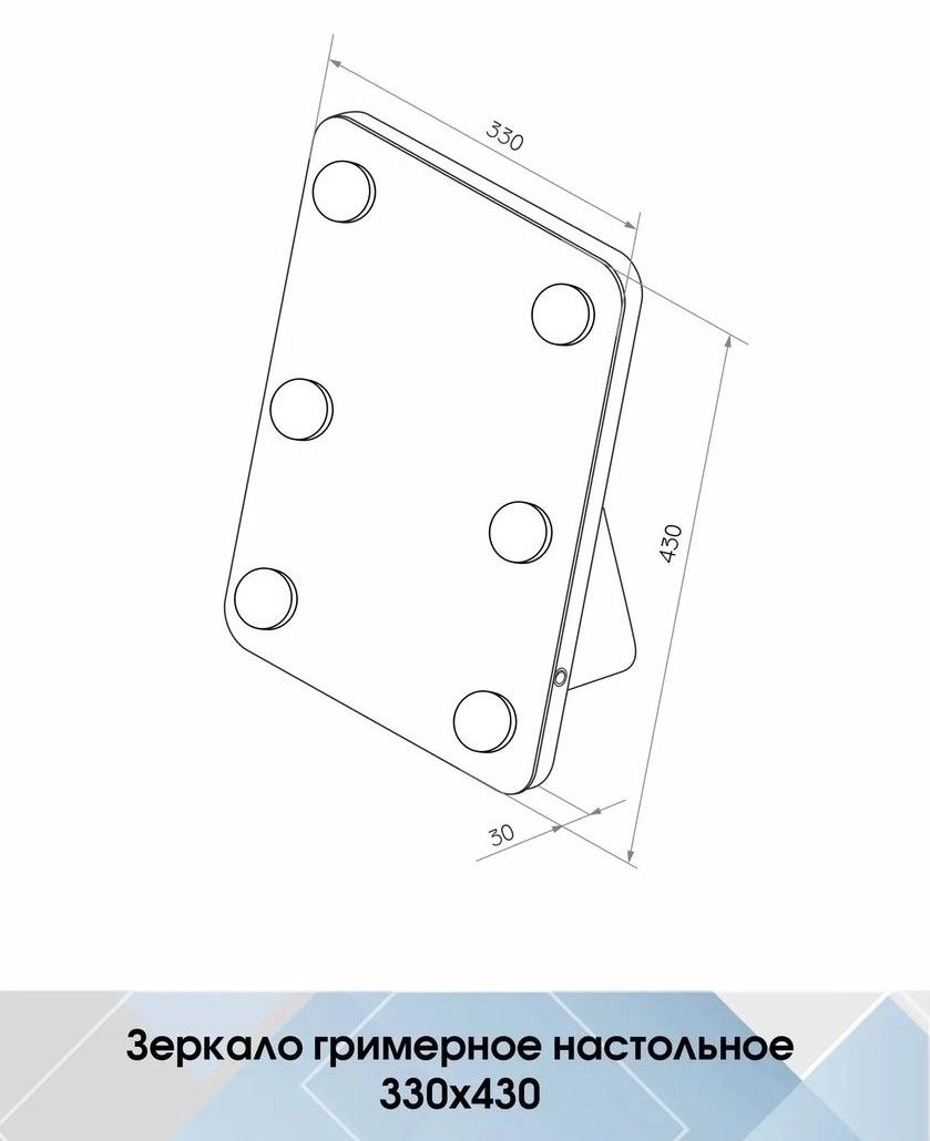Гримерное настольное (6 LED ламп) 330х430LED подсветкафункция изменения теплоты подсветки (холодная/нейтральная/теплая)механический выключатель
