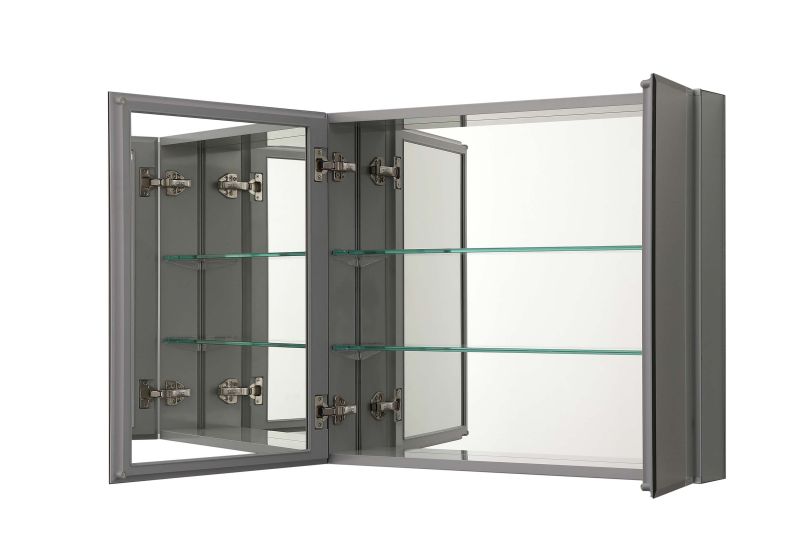 Зеркальный шкаф оснащен практичными полочками, которые позволяют организовать хранение различных предметов — от косметики до банных принадлежностей. Пространство внутри шкафа можно легко настроить под свои нужды, благодаря регулируемым полкам.