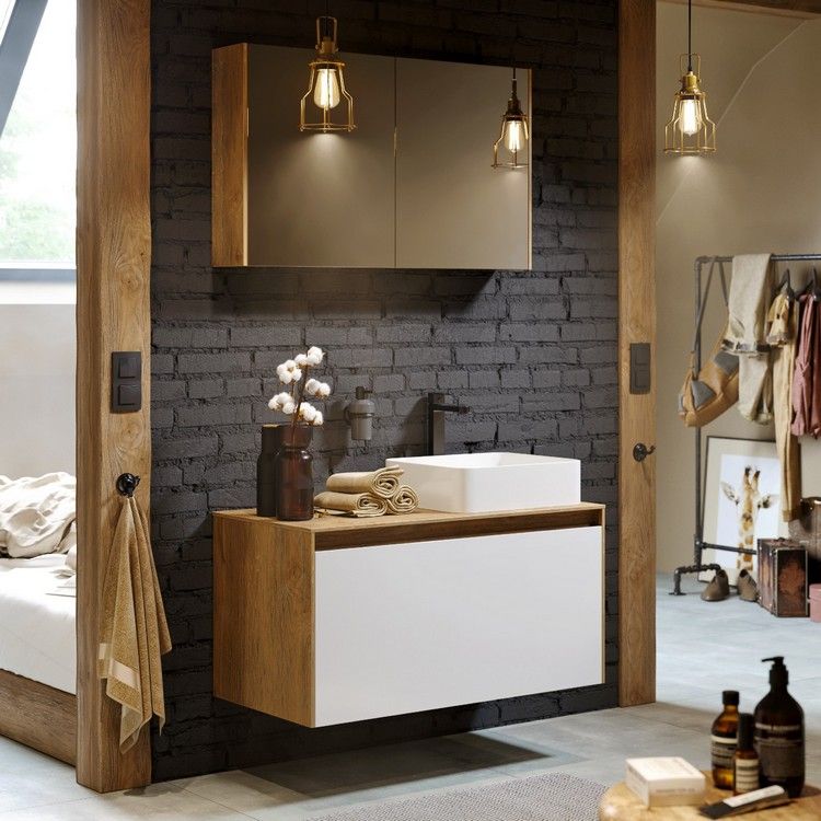 Зеркало-шкаф Aqwella Mobi MOB0410+MOB0717DB 100 смЗеркальный шкаф 100 см с двумя дверьми на петлях с доводчиком. Цвет дуб балтийский