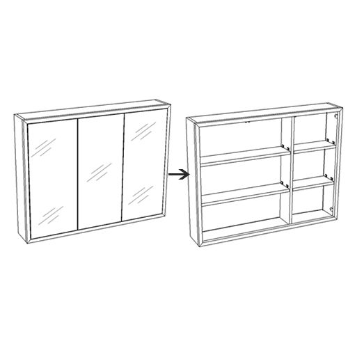 - Зеркало-шкаф закреплено на металлическом каркасе