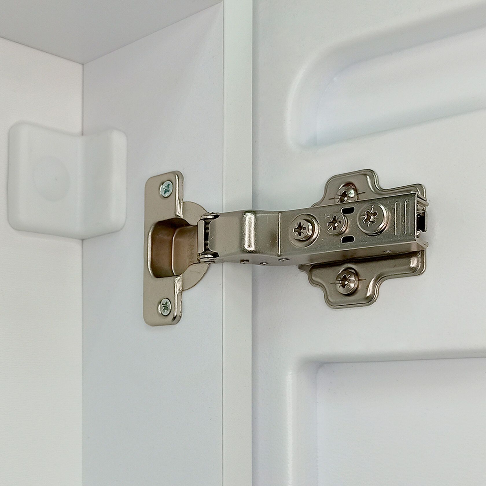 Стеклянные полки легко регулируются по высоте. Хромированные крепления не ржавеют при длительной эксплуатации в условиях повышенной влажности. Защита по стандарту IP44 обеспечивает безопасное использование устройства в условиях повышенной влажности